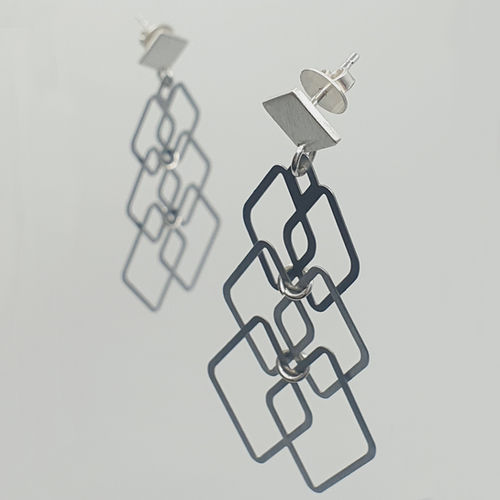 Ohrschmuck gefertigt in Silber oder Gold kombiniert mit Edelstahl (blanco oder pulverbeschichtet mit Le Corbusier Farben)